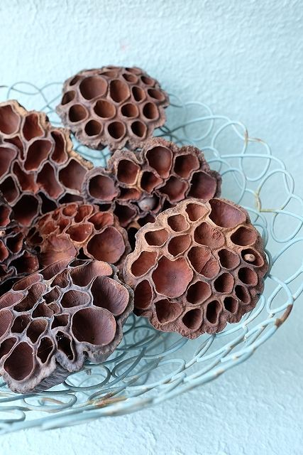 当農場でデコール用に栽培した蓮の乾燥花托です。