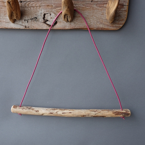 棒流木と皮ひもを使って製作しています。棒流木の滑らかな部分のみを使ったストールハンガーです。通常のストールハンガーよりも横幅が長めになっています。 ストール専用ハンガーですがもちろんタオルハンガーとしてもお使いいただけます。