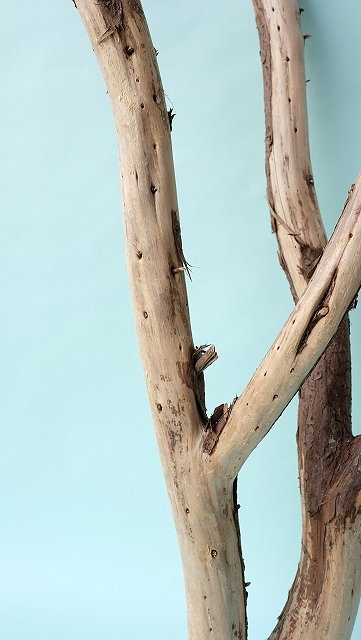 固く、しっかりとした素材です。硬質・高密度で逞しい印象の枝材です。黒い表皮が残存し枝らしい表情に温かみがあります。オブジェ・インテリアにお勧めします。
