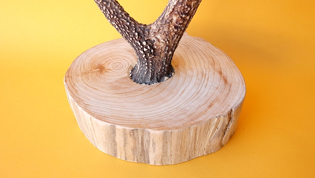 中サイズの鹿の角をアレンジして製作した小物掛けです。土台部分には上質な丸太流木を使用しています。指輪・ネックレス・時計等のアクセサリーやキーなど小物を掛けることができます。