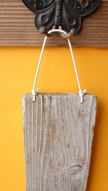 エアープランツ専用のオブジェです。硬質・高密度でシャビー感のある板流木に設置部分の変形流木をアレンジして製作しました。アクセントに牛皮を使用しています。