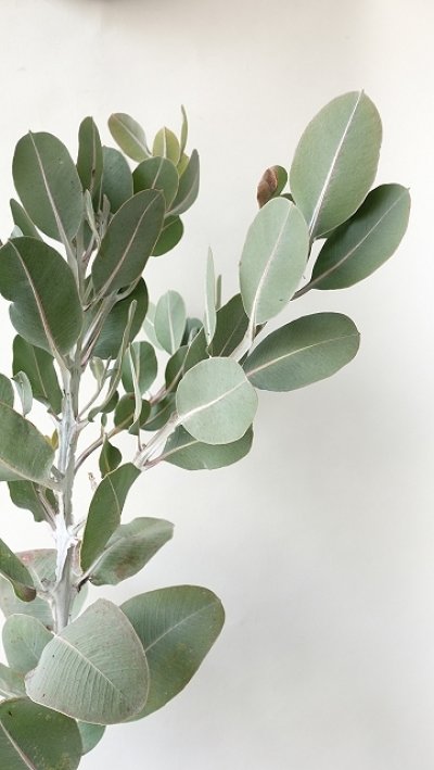 ユーカリの中でも葉が大きく特に美しい生切り枝です。シルバーの方は茎や実が白く葉が白っぽい銀色をしています。女性に人気が高く、生け花やフラワーアレンジメントなど汎用で有名なユーカリです。