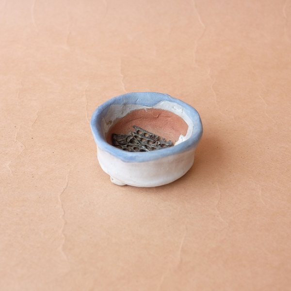 成形時の指の圧により均一ではないムラのある形状に味わいと趣を感じる作品です。ミニ盆栽・苔・多肉の株分け・小物入れ・インテリア、オブジェ等お好きに演出してください。