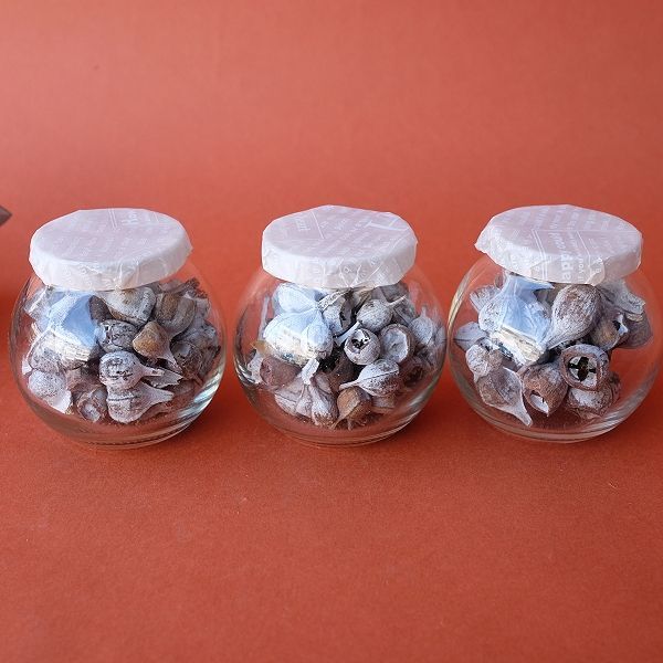 ユーカリテトラゴナシルバーの実の部分を小瓶に詰めました。