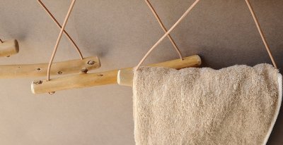 通常のストールハンガーよりも流木部分、ヌメ皮紐共に太目のものを使用しています。材質も良く似たものを揃えております。