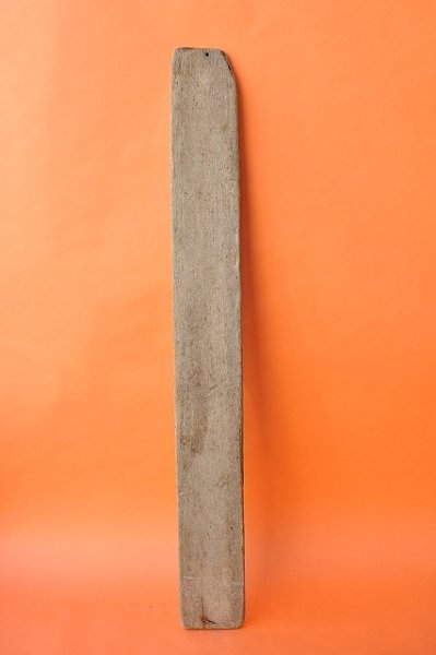 固く、しっかりとした素材です。両面共美しくシンプルです。下部に釘が残存しています。ずっしりと重みがあり、板流木では大型になります。