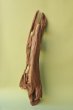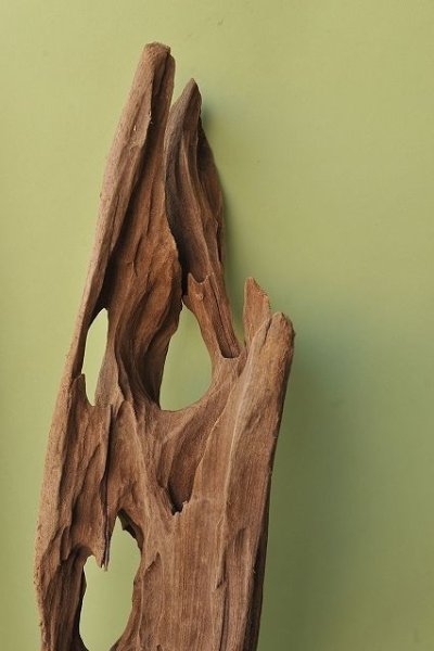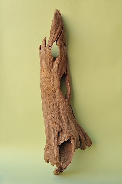 固く、しっかりとした素材です。高密度でずっしりと自重があります。表皮は希少な深みのある茶褐色で滑らかで渋さと味わいがあります。表面は滑らかで木目が美しく優しい印象ですが裏面はエッジの効いた抜群の浸食美があります。単体で目を惹く逸材で店長の私的コレクションより出店しました。
