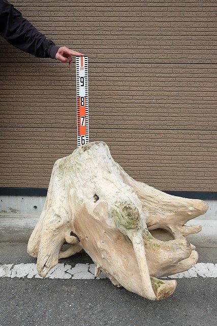 大木の根部分で存在感とダイナミックさがあります。表皮は満遍なく真っ白でツルツルとした手触りで滑らかです。底部も滑らかで浸食が非常に美しく個性的で緊張感のある意匠となっています。