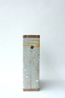 板流木で作った定番のトロ箱にアンティーク塗装を施したものです。落ち着きのある塗料を選び、接合部分に銅板を施して味わいと趣を演出しています。個人的にもお気に入りの商品です。