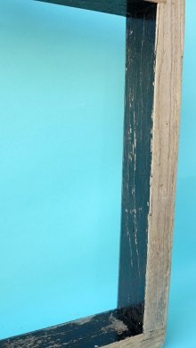 固く、しっかりとした素材です。額縁状に枠組みされた板が浸食されたものです。非常に硬質でずっしりと自重があります。木目の浸食が美しい材です。表面に黒い塗料が残存しています。壁面装飾としてお勧めします。