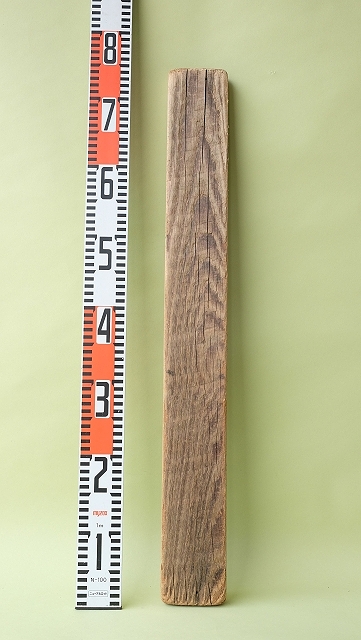 固く、しっかりとした素材です。表皮は両面共に滑らかで木目の美しい材です。厚みがありますのでニッチの棚板としていかがでしょうか。