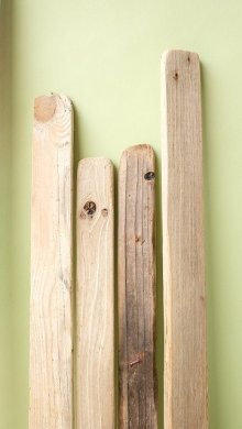 固く、しっかりとした素材です。程よいシャビー感のある材です。一部に錆びた釘が残存しています。