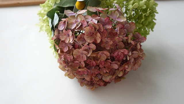 アナベルアジサイのドライをベースにミニブーケを作りました。