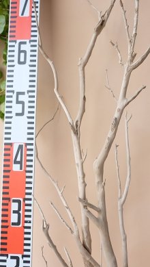 固く、しっかりとした素材です。硬質・高密度で下部は繊細な根が残存し、枝部分も八方に枝分かれしていてバランスのとれた美しい材です。表皮は満遍なく真っ白です。オブジェ、インテリアとしてお勧めします。