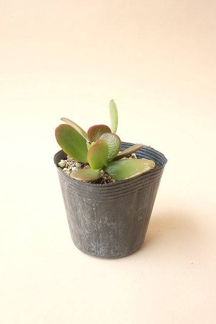 当農場で育成した多肉植物です。品種は黄金花月(おうごんかげつ)・ クラッスラ属です。当店の多肉植物の特徴として、ポット苗ではなく大きく生育させてから出荷をしております。また完全無農薬で栽培しております。