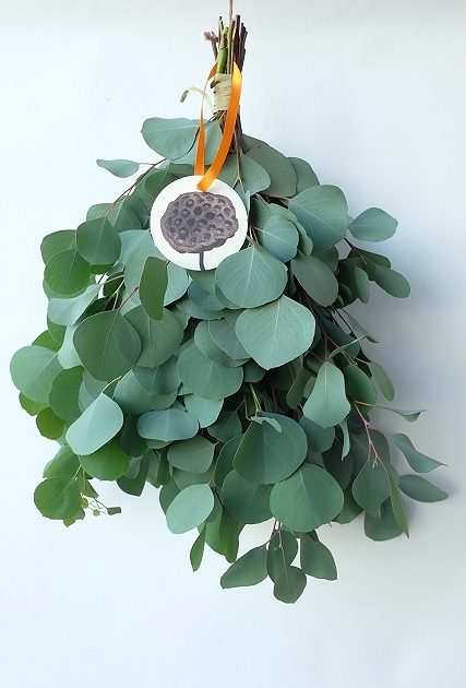 のスワッグです。長尺ユーカリをボリュームたっぷりに結びました。