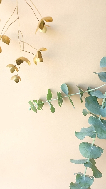 インテリア雑誌や生花店で見かける切り枝はフラワーベース用の短いものですが当店では壁面装飾・天井装飾用にドライプランツとして長くご愛用いただけますよう長尺で裁断しております。