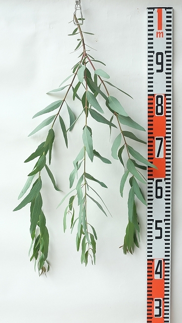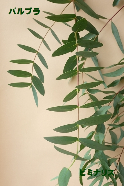 葉先が尖った細長い小葉のかわいらしいユーカリで派手さはありませんがアクセントに最適です。