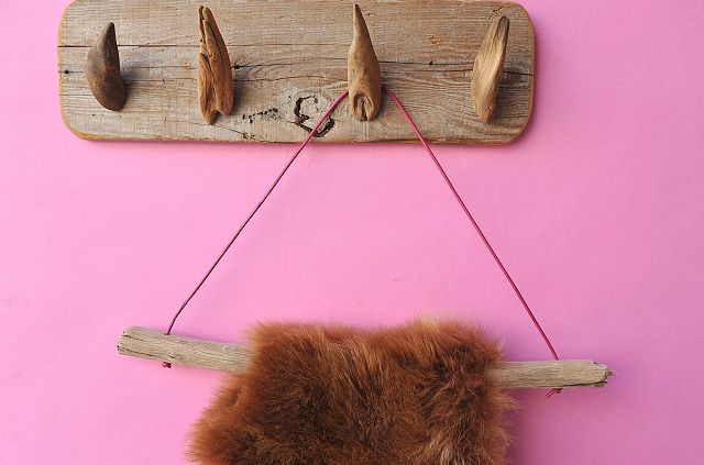 ホーム | ナチュラル雑貨 > 流木ハンガーストールハンガー(ヌメ皮・ピンク)