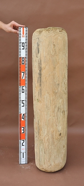 硬質・高密度でずっしりと自重があります。上下の年輪部分は美しく、表皮はざらつき感はありますが白いです。メイン写真の状態で自立します。